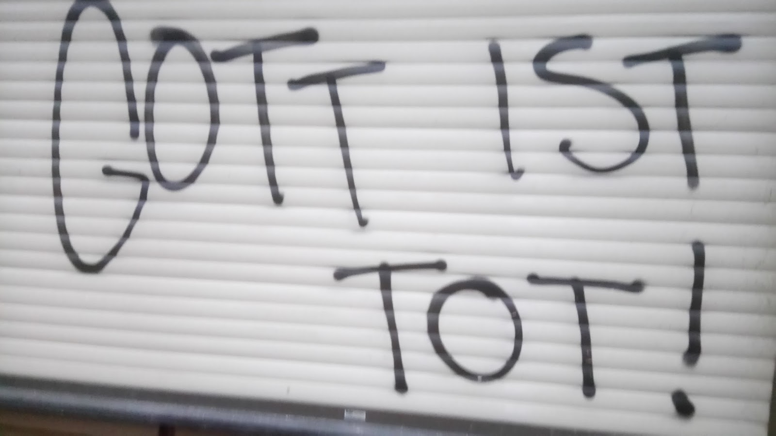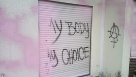 Eine Wand des Hauses wurde komplett pinkfarbene beschmiert, samt Fenster und Holztäfelung. An allen drei Außenwänden wurden anarchistisch-feministische Graffitis bespritzt, sowie Sprüche wie „Gott ist tot“ und „My Body, my choice“. Erfreulicherweise kam niemand zu Schaden.